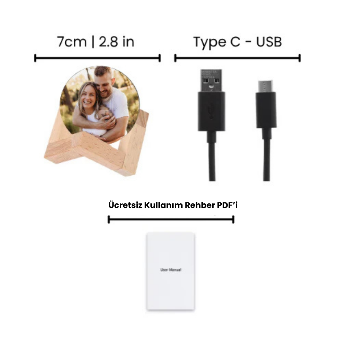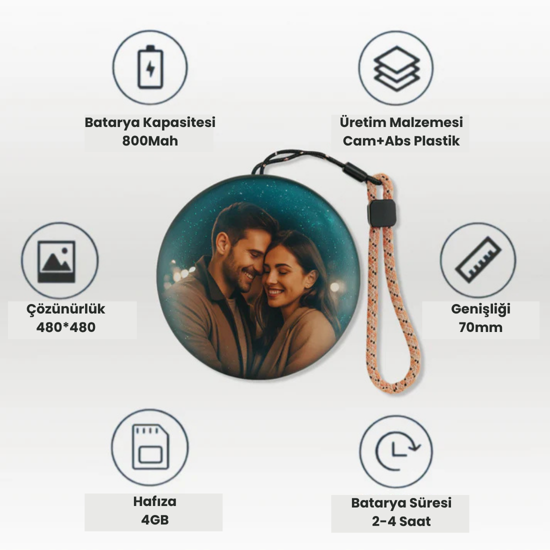 Kişiselleştirilmiş videonuzu oynatan, dahili ekrana sahip 3 boyutlu bir kristal küredir. USB-C ile bağlayıp dosyanızı yükleyerek videolardaki gibi izleyebilirsiniz.